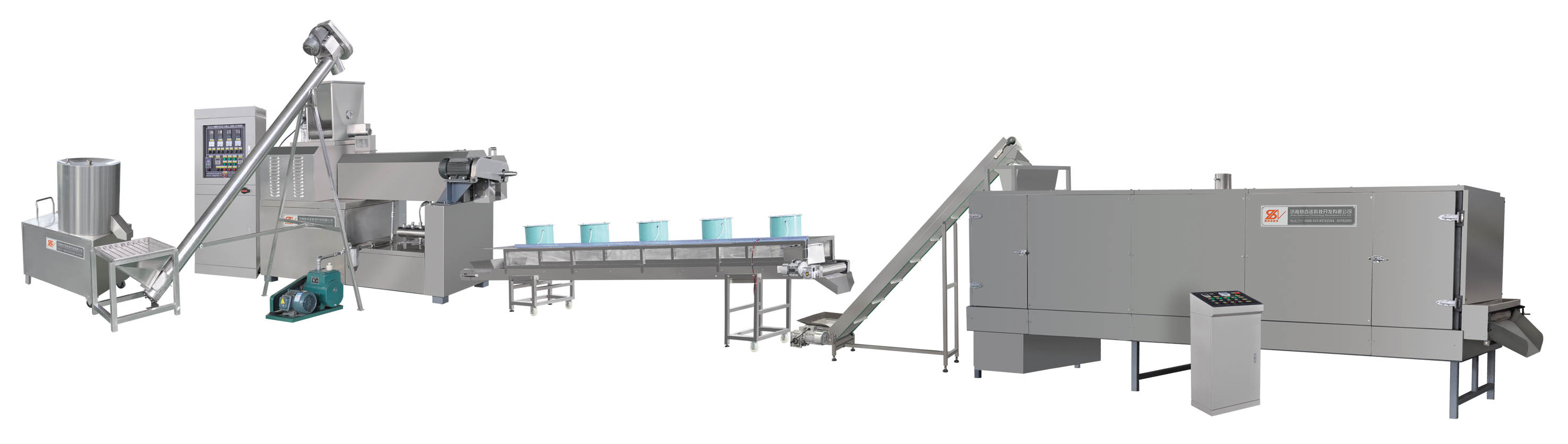 المجفف: يمكن أن يوفر المجفف متعدد الطبقات مساحة كبيرة في المصنع. يمكنه تجفيف المعكرونة بكفاءة عالية مع طبقة "s" في الداخل. المجفف مصنوع من الفولاذ المقاوم للصدأ.